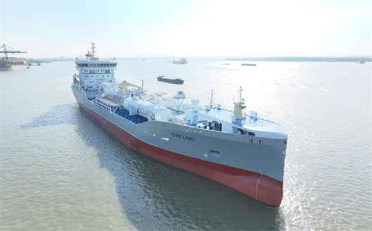 8月28日,招商工业扬州鼎衡船厂第二代15000吨甲醇双燃料推进系统(就绪)船-8#Tern Land顺利交付,并正式投入运营。该船型在集成Hybrid混动系统及岸电技术的基础上,还装备了甲醇双燃料推进系统和风帆辅助推进系统,可兼容MGO、生物燃料与甲醇多种燃料。并在2023年挪威海事展上斩获“下一代船舶”奖。