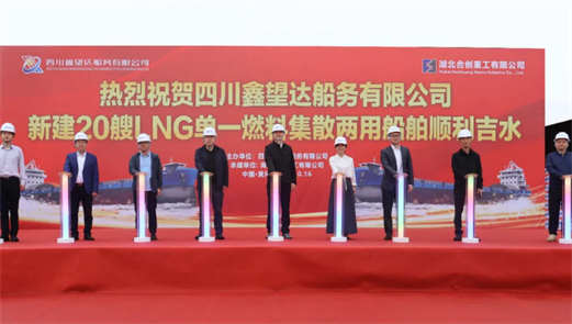 10月16日,湖北合创重工有限公司热烈祝贺四川鑫望达船务有限公司首批LNG单一燃料集散两用船舶【望达1037】轮,金日顺利吉水,大吉大利!