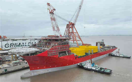 比利时海事工程公司扬德努(Jan De Nul)最新一代铺缆船“弗莱明·詹金号”(Fleeming Jenkin)已在招商局工业海门基地完成下水仪式。