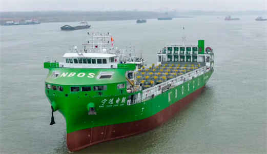 4月15日,由中船七〇四所提供新型纯电推进系统的中国首艘、世界最大740TEU纯电动智能集装箱海船“宁远电鲲”号圆满完成各项试验,正式交付启航。